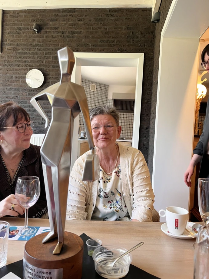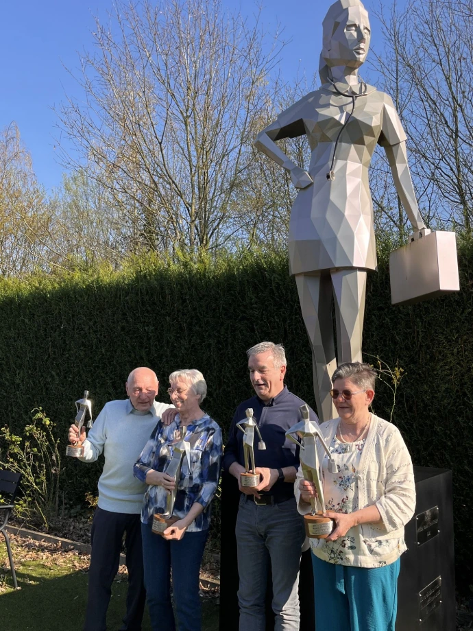 Voor dit eerste evenement moesten we kiezen wie de eerste vier kandidaten Epione – winnaars zouden zijn. De eerste Epione-award ging naar Eddie Becks, oprichter van VP 2000, VP Plus en de andere VP’s. De bedenker van Epione maar ook inspirator van de Raad der Wijzen, is een lichtend voorbeeld voor meerdere verpleegkundigen en tevens mecenas van Epione junior. De tweede genomineerde was Ronny Pascal, verpleegkundige van het eerste uur en ook vanaf het prille begin aanwezig in de VP-structuren. De derde genomineerde was Yvonne Vervoort, een naam die in de regio Leopoldsburg klinkt, die er vanaf de opstart van VP 2000 bij was, aandeelhouder werd, via het NNBVV in de Riziv-commissie zetelde en die VP beschouwde als van ‘ons’. De vierde genomineerde is Maria Vranken, jaren thuisverpleegkundige en sedert enige tijd op pensioen maar nog altijd in hart en nieren verpleegkundige die in elke situatie haar kalmte weet te behouden. Zij was er ook vanaf het eerste uur bij en gaf in het Noorden van het land, VP de nodige bekendheid.